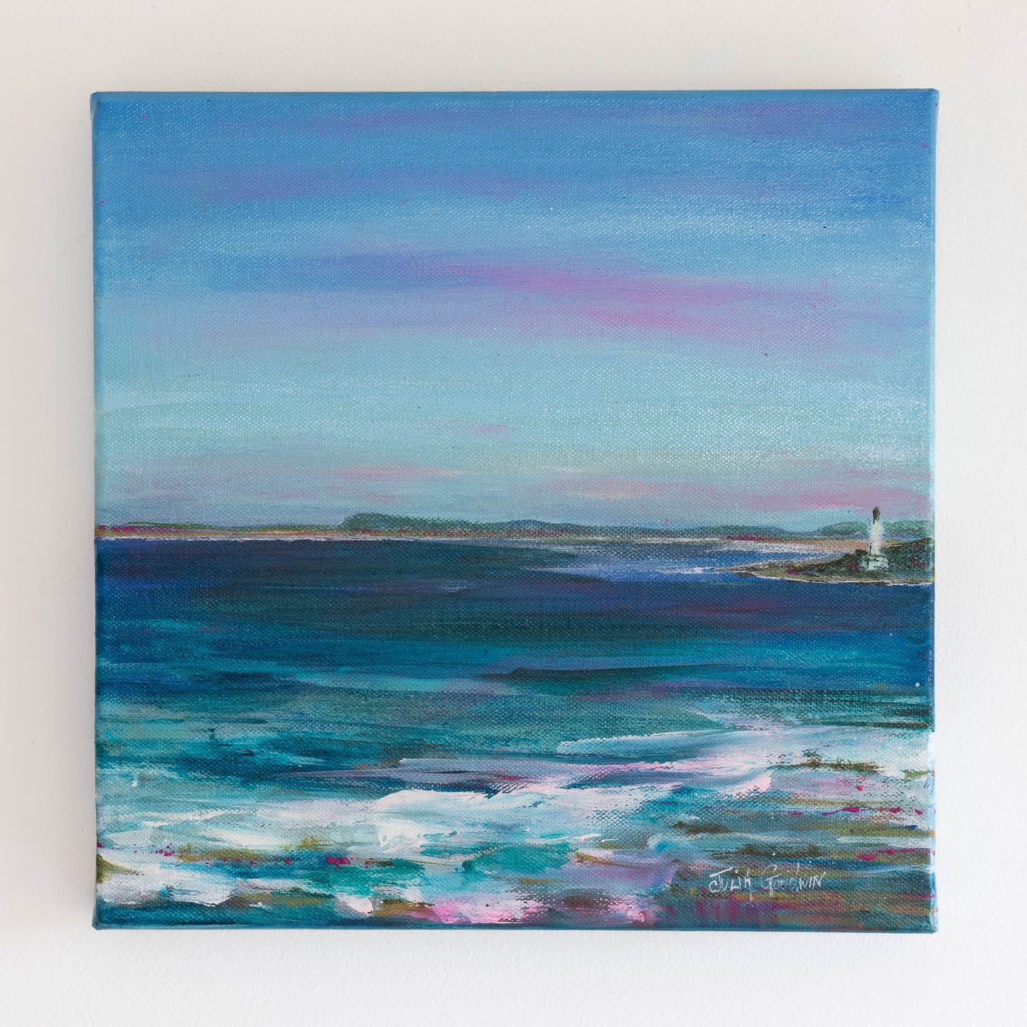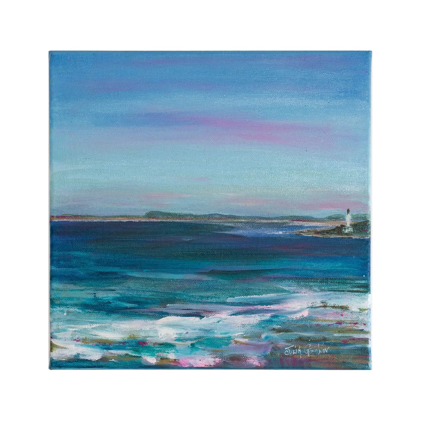 The artwork, painted in luminous acrylics, captures the tranquil essence of Point Nepean, where land meets sea and whispers of history gently echo through the environment. Each brushstroke and colour choice speaks to Julia's emotional landscape, creating a sense of calm and contemplation.