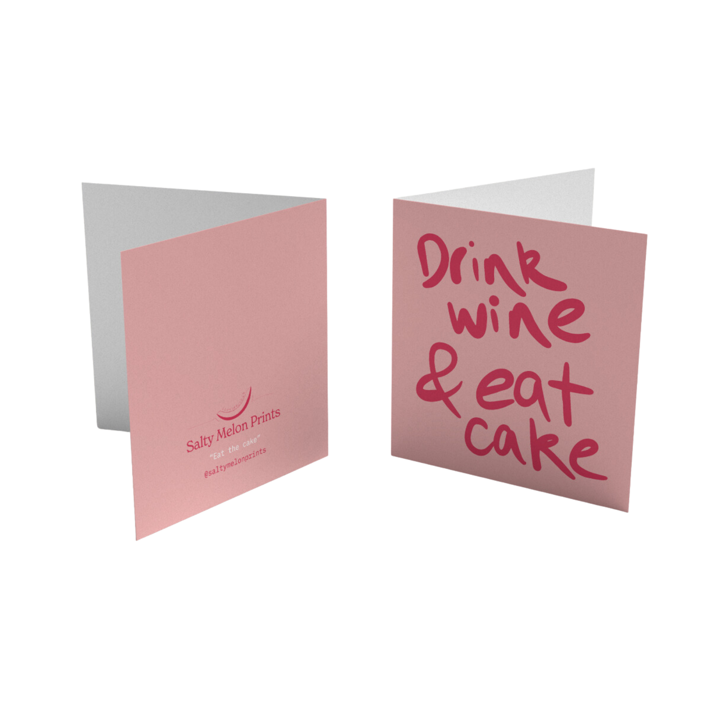 Life's too short to skip the wine or the cake, so celebrate both with our charming "Drink Wine & Eat Cake" greeting card from Salty Melon Prints! This delightful card captures the spirit of joyful indulgence and makes the perfect companion for any occasion where you want to let loose and enjoy life's sweet moments.